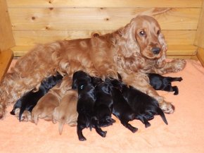 Our puppies are born and grown up in our house. They are in contact with humans and if the time has come, also with our other dogs. During the same time they get acquinted to noises like vacuuming, doorbell ringing, laughter and all kinds of different everyday noises. The tiny cockers will also experience a ride in the car.